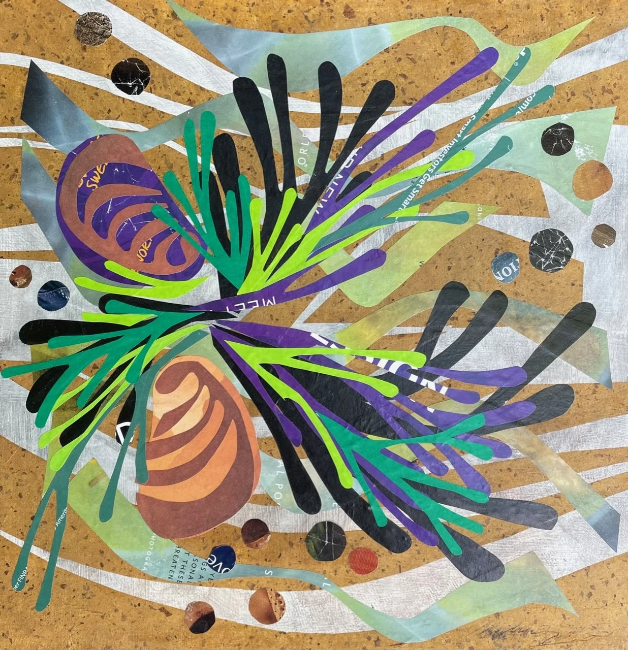Seaweed Study #2 12x12 in. Collage on wood panel 2022